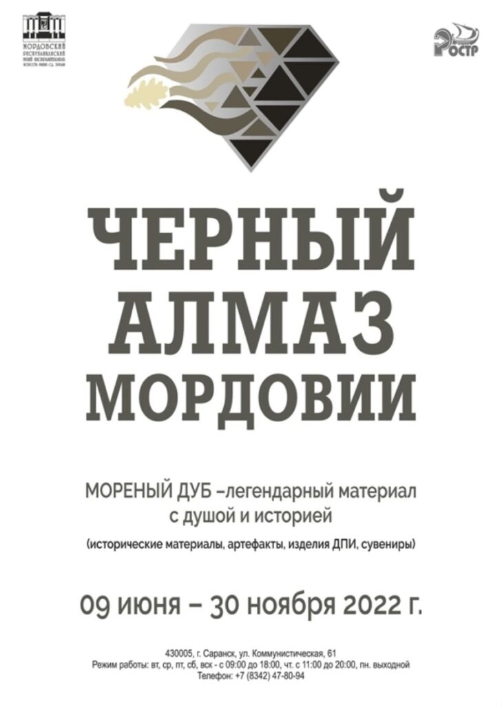 9 июня в Саранске компания Ростр совместно с Музеем Эрьзи* торжественно открыла выставку «Чёрный алмаз Мордовии», посвящённую уникальному ископаемому природному материалу — морёному дубу. Основной целью художественно-информационного проекта ООО «Ростр» является демонстрация ценнейшего древесного материала как уникального природного ресурса Республики Мордовия.