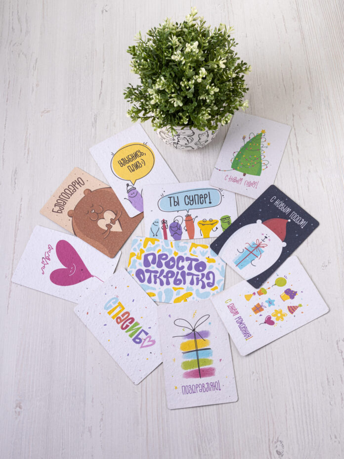 Открытка – универсальное дополнение к любому подарку, а растущая открытка из «живой» бумаги – не только дополнение, но и самостоятельный необычный сувенир. Обычно открытки убираются на дальнюю полку, а с растущей открыткой можно взаимодействовать и дать ей дополнительное использование. Простое и понятное выращивание полевого букета увлечёт и детей, и взрослых. Яркий дизайн, доступная цена – ещё плюсы растущей открытки.