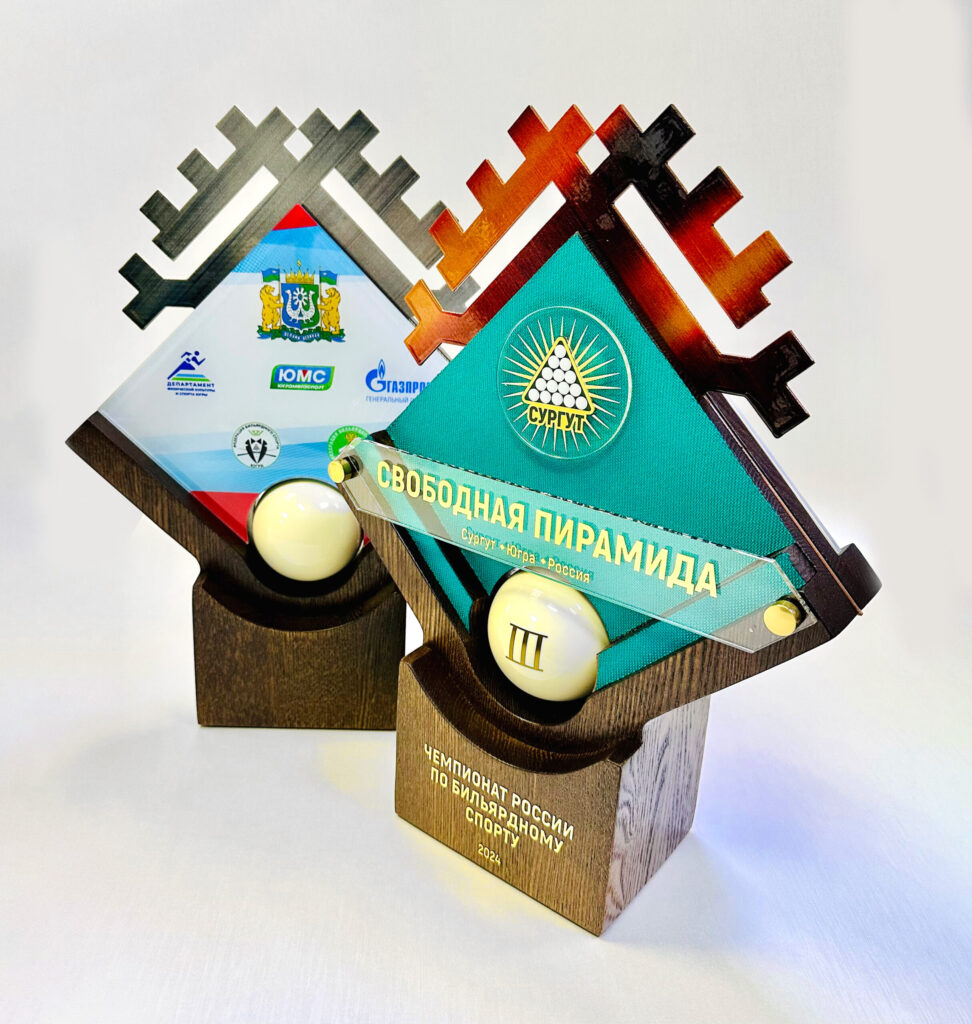 Награда изготовлена к Чемпионату России по бильярдному спорту, который состоялся в 2024 г., в Сургуте*.