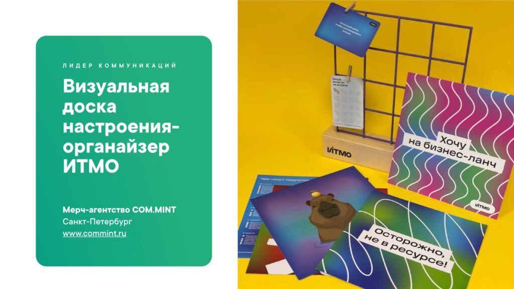 Набор с мудборд-органайзером Relax and Trust AI* создан для визуализации идей и организации рабочего пространства, возможности оставить на виду то, что важно: фото, идеи, заметки. Проект изготовлен специально для кампании Университета ИТМО.