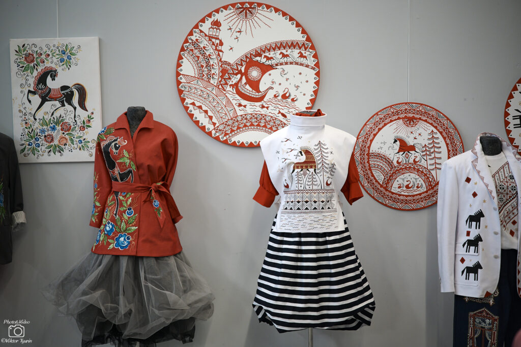 Гостей встречали легендарные гжель, хохлома, знаменитые пуховые платки из Оренбурга, финифть из Ростова, абрамцевская керамика, деревянная прялка с 200-летней историей, художественная обработка стекла из города Гусь-Хрустальный, сказочной красоты ковры из Дагестана и множество других работ, отражающих богатство народных художественных промыслов России. Это особенно актуально в «Год единства народов России», объявленного указом президента РФ в 2026-м.