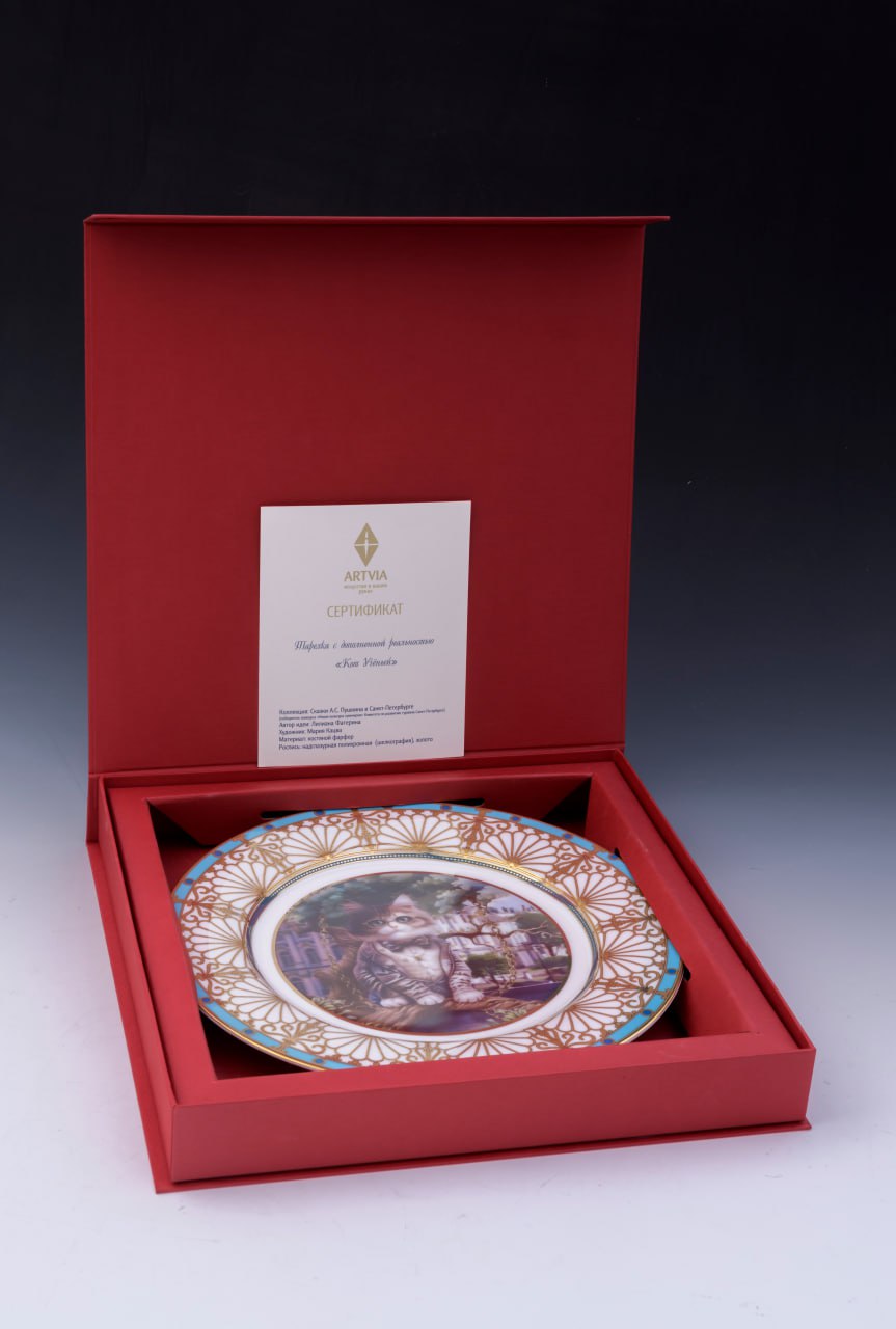 Коллекция тарелок из тонкого костяного фарфора с дополненной реальностью «Сказки Пушкина в Петербурге» выполнена по мотивам произведений поэта и приурочена к его 225-летнему юбилею. Её создание гармонично сочетает плоды творчества креативной группы профессиональных художников, дизайнеров и магию искусственного интеллекта.