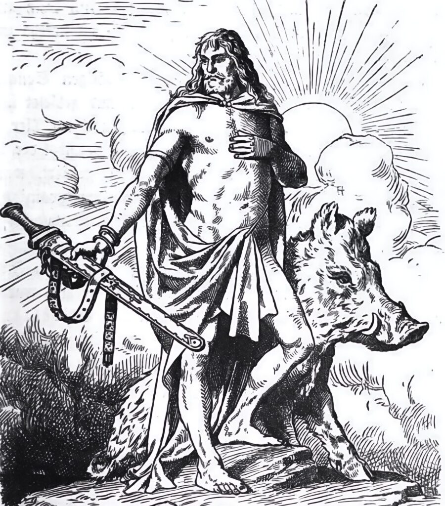 Но Фрей или Фрейр (Freyr) не был «богом солнца», а был богом плодородия, мира и солнечного света. Да и кабан, на котором он летал, был священным животным.