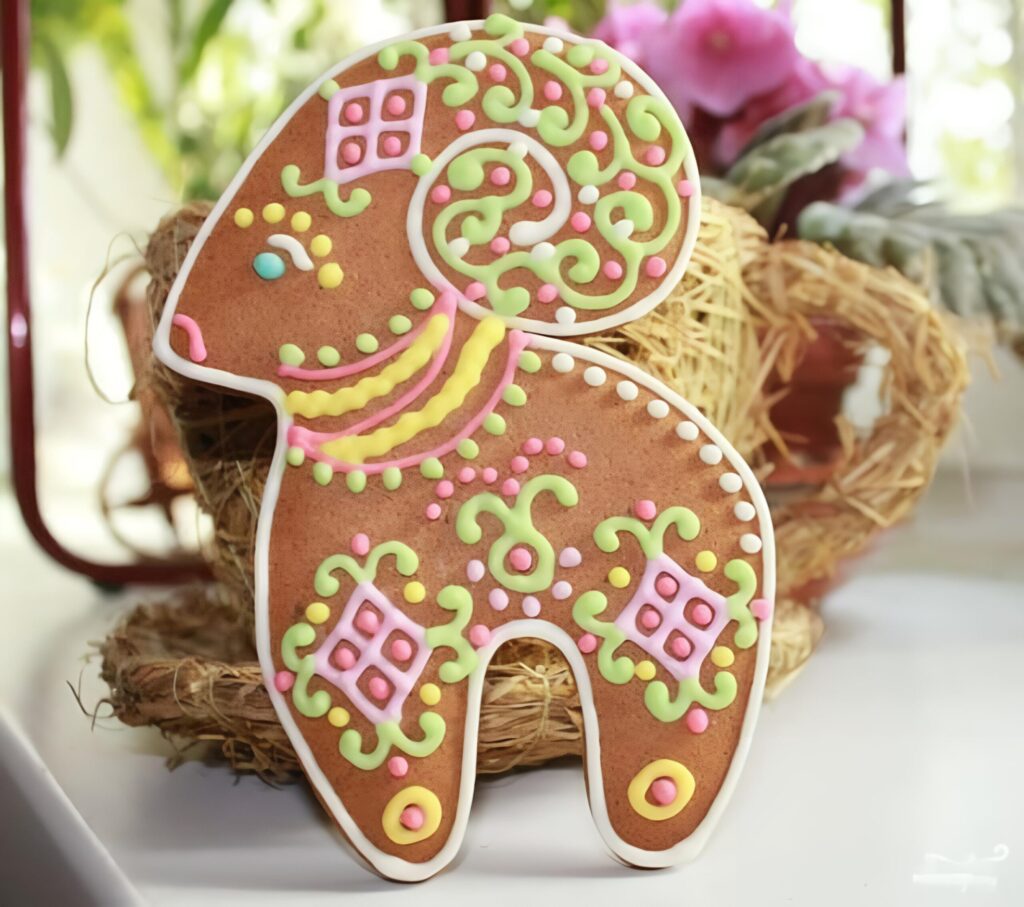 Также принято выпекать специальное печенье с контурами животных. Весьма популярны как свиньи, так и козлы. Сейчас это печенье делают в Европе из пшеничной муки с добавлением специй, в частности имбиря. Поэтому оно и называется имбирным печеньем.