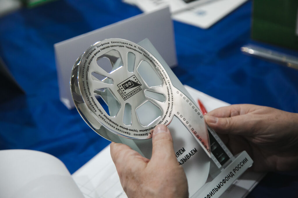 Изделие представляет собой оригинальную награду в виде катушки киноленты, выполненной из стекла и нержавеющей стали. Основа — осветленное стекло, с надписями «Сохраняем и показываем кино», «Госфильмофонд России» и др. Награда содержит часть оригинальной киноленты с кадрами.