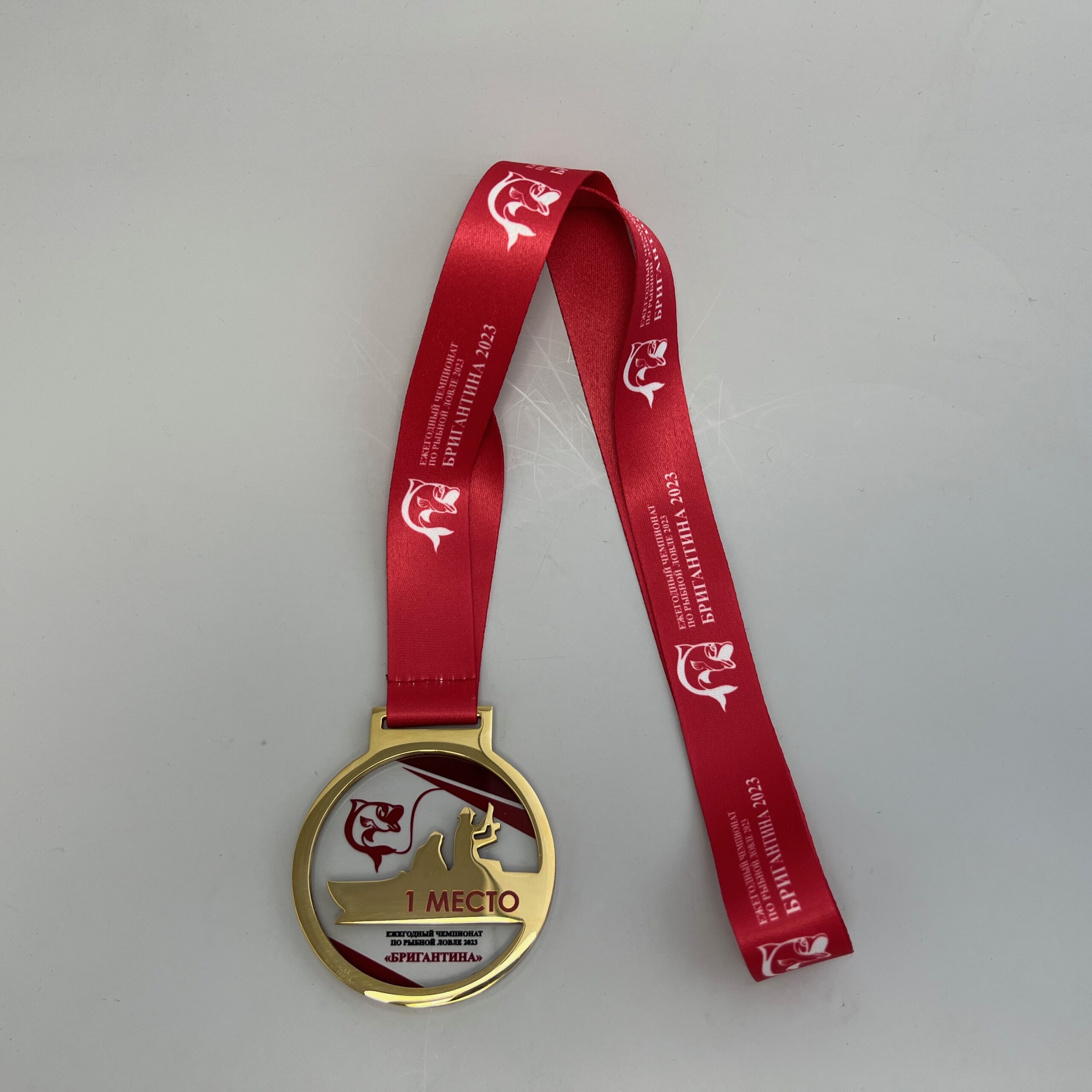 Медаль с брендированной лентой выполнена из органического стекла с металлическим ободом из латуни, что придаёт ей чистоту, прочность и естественную эстетику. На лицевой стороне — логотип турнира и изображение рыбалки и воды, имя лауреата, дата и место (1, 2, 3).
