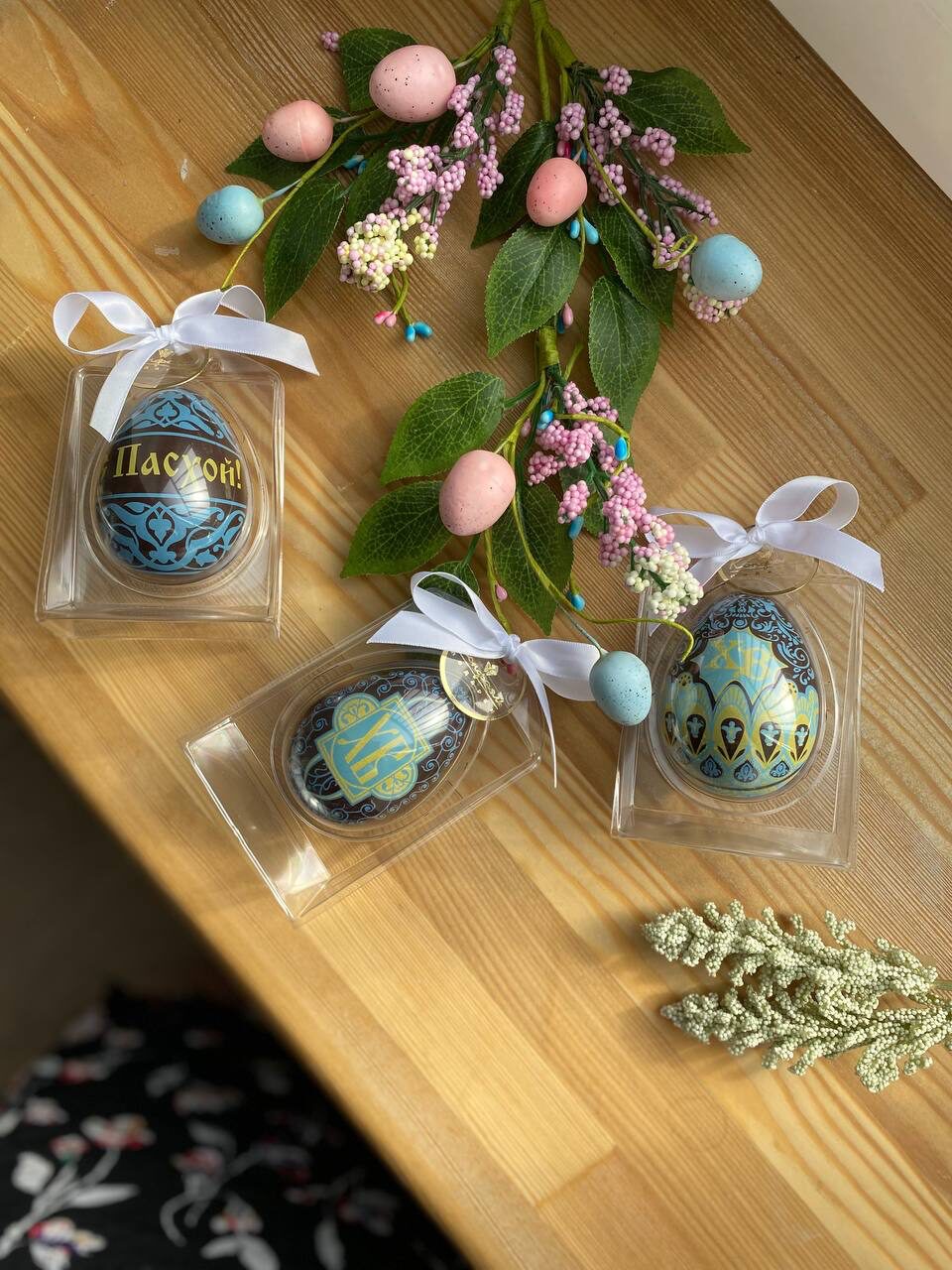Шоколадная фабрика «Конфаэль» чтит традиции: каждый год пасхальная коллекция пополняется новыми объемными расписными шоколадными яйцами, яркими открытками из горького и белого шоколада с посвященными празднику сюжетами, наборами конфет «Ассорти» и больших конфет-суфле с яркими принтами на шоколадных корпусах и тающими на языке начинками, шоколадными «леденцами»-яйцами на палочке.