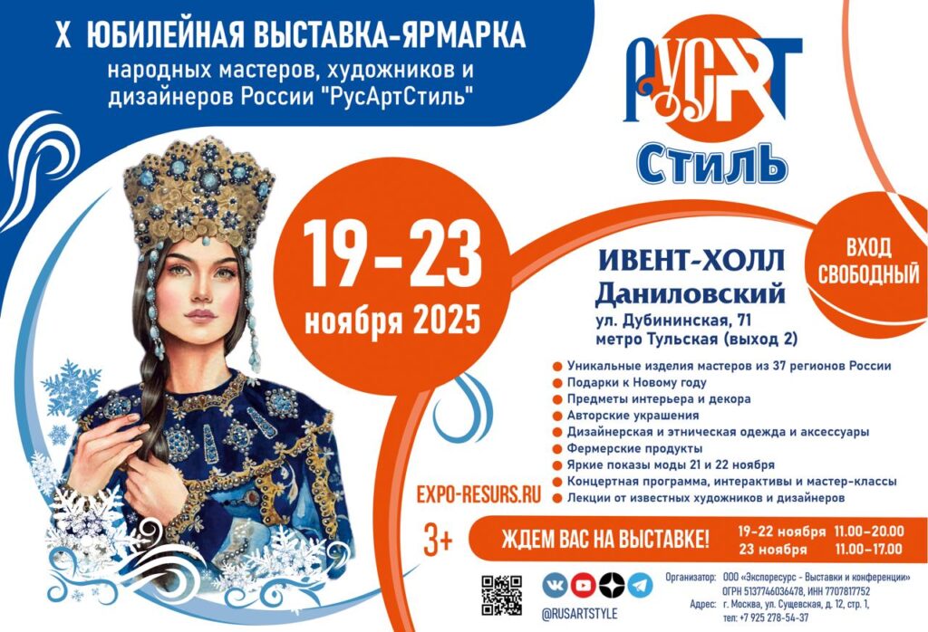Юбилейная X Выставка-ярмарка народных мастеров, художников и дизайнеров России «РусАртСтиль», что пройдёт 19 – 23 ноября в «Ивент-холле Даниловский», станет актуальной дискуссионной площадкой. Эксперты обсудят, как коррелируют сегодня между собой народные традиции и современные инновации, древние ремесла и киберреальность.