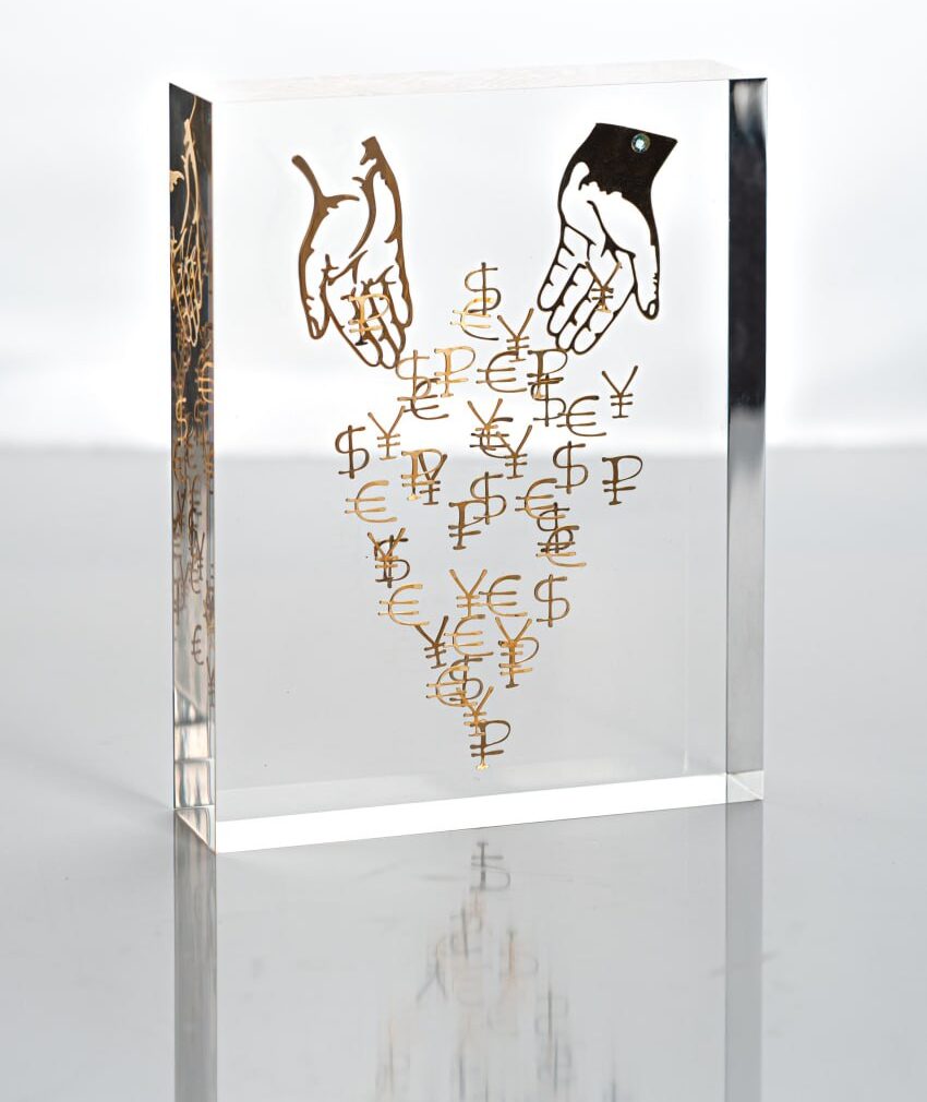 Поэтому поиск решений продолжился и привёл к акриловому стеклу. Работать с ним оказалась гораздо сложнее: требовались другие условия, оборудование и множество испытаний. Но именно акрил позволил добиться того качества, которое соответствует представлению компании о настоящем произведении. Он сохраняет абсолютную прозрачность, долговечность и даёт эффект цельного монолита — без слоёв и искажений.