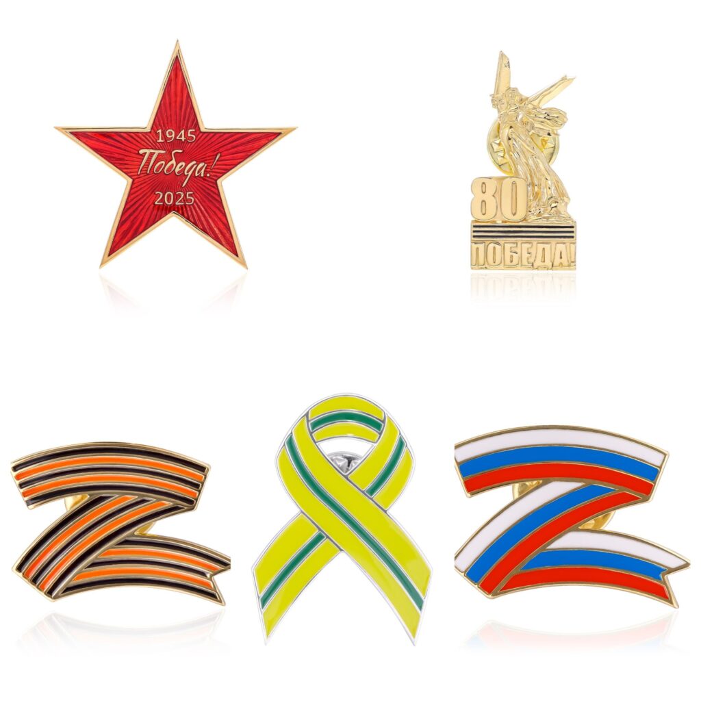 В коллекции: пятиконечная звезда, монумент «Родина-мать зовёт», «Георгиевская ленточка», «Ленточка Ленинградской Победы», знак «Z».