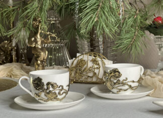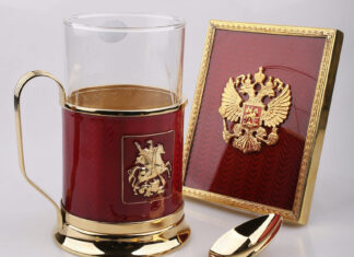 Коллекция серебряной посуды с символами Победы