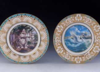 Коллекция тарелок из тонкого костяного фарфора с дополненной реальностью «Сказки Пушкина в Петербурге» выполнена по мотивам произведений...