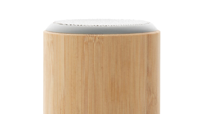 БЕСПРОВОДНАЯ КОЛОНКА ИЗ БАМБУКА И ТКАНИ, 3 ВТ с литиевым аккумулятором емкостью 300 мАч. Полностью заряженная способна звучать до 3 часов. Благодаря BT 5.0 надежно держит сигнал на расстоянии до 10 м. Изготовлена из натурального бамбука и ткани.