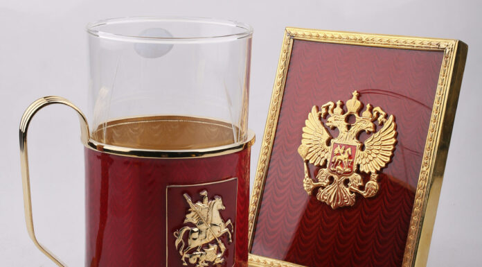 Подстаканник из меди и серебра 925 пробы, гильошированная эмаль, электроформинг.