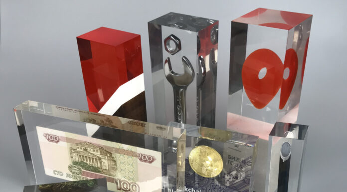 Студия «3D-Art Steklov» с 2015 года производит мотивирующую продукцию для награждения лучших сотрудников, ответственных партнёров и коллег. Разработанная технология заливки предметов в полимерную смолу позволяет создавать награды, тесно связанные с тематикой любого мероприятия, бизнеса или производства.