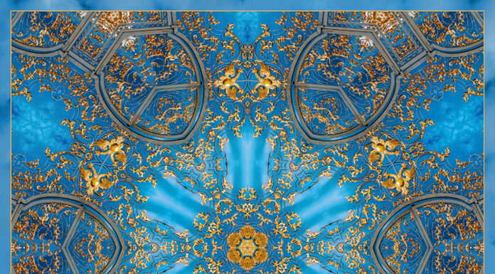 Узор платка был заимствован с фрагмента Золотых ворот Екатерининского дворца в Царском селе (пригород Санкт-Петербурга). Это одна из жемчужин Екатерининского дворца, мимо которой нельзя пройти отстранённо. Ворота называют «золотыми» из-за обилия позолоченных ажурных деталей и орнамента на решётке в барочном стиле.