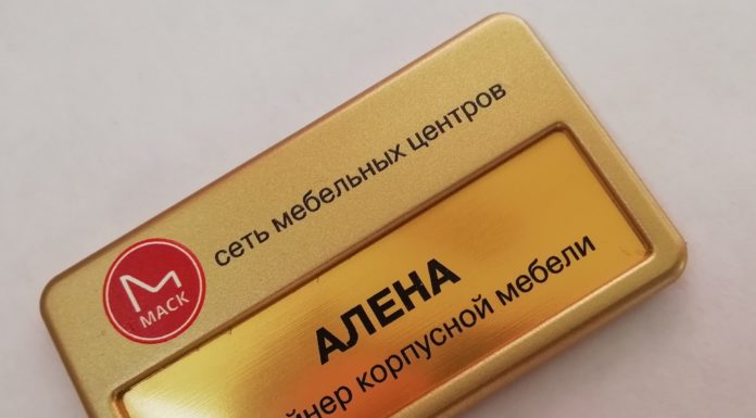 Вместо бумажного вкладыша с именем сотрудника с защитной прозрачной пластиковой вставкой можно использовать вставку золотого цвета с гравировкой или печатью имени, что придаст бейджу дорогой и солидный вид.