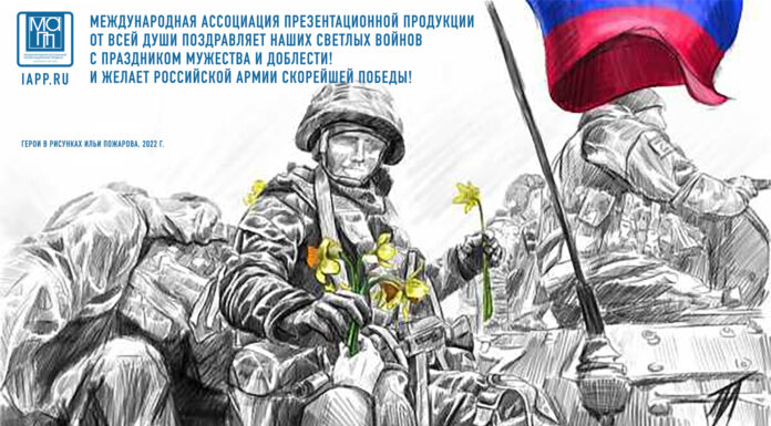 Дорогие защитники нашего Отечества, Международная Ассоциация Презентационной Продукции поздравляет вас со славным ратным праздником и желает российской армии скорейшей ПОБЕДЫ!