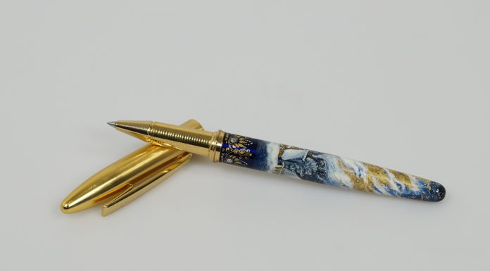 Ручка «Новгород» отечественного бренда пишущих принадлежностей «Салiасъ» с уникальной ручной росписью работы палехских художников.