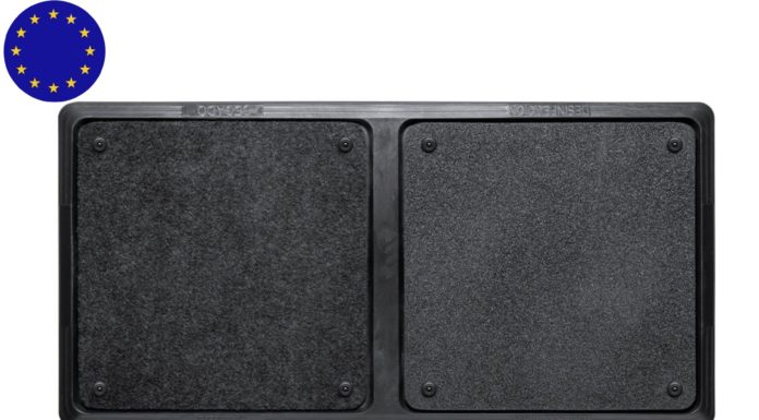 Основание из прочной противоскользящей резины, изготовленной из переработанных материалов, с двумя независимыми и правильно обозначенными зонами для дезинфекции и сушки.