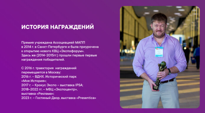 Премия учреждена Ассоциацией МАПП в 2014 г. в Санкт-Петербурге и была приурочена к открытию нового КВЦ «Экспофорум».