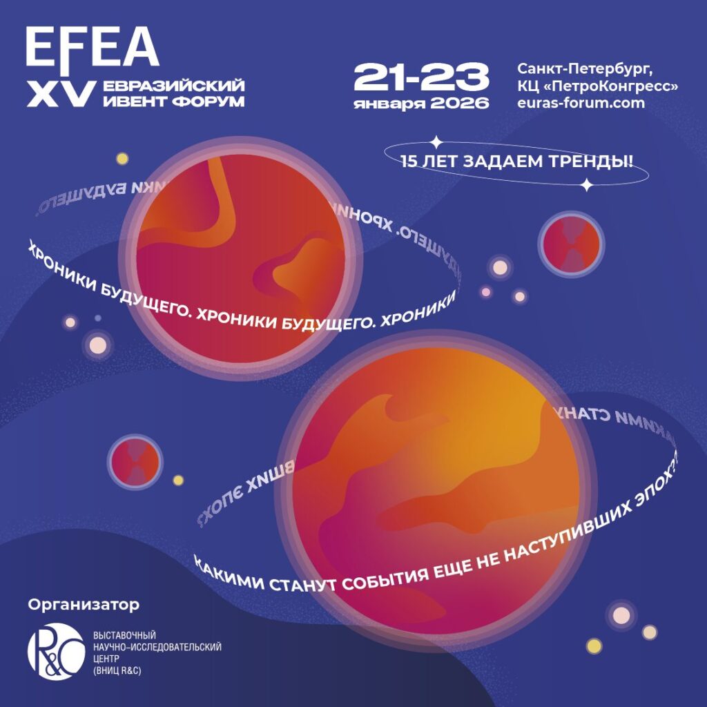 Присоединяйтесь к EFEA 2026 и откройте для себя новые горизонты в мире событий! Ждем вас 21-23 января 2026 года на XV Евразийском Ивент Форуме (EFEA) в конгрессном центре «ПетроКонгресс».